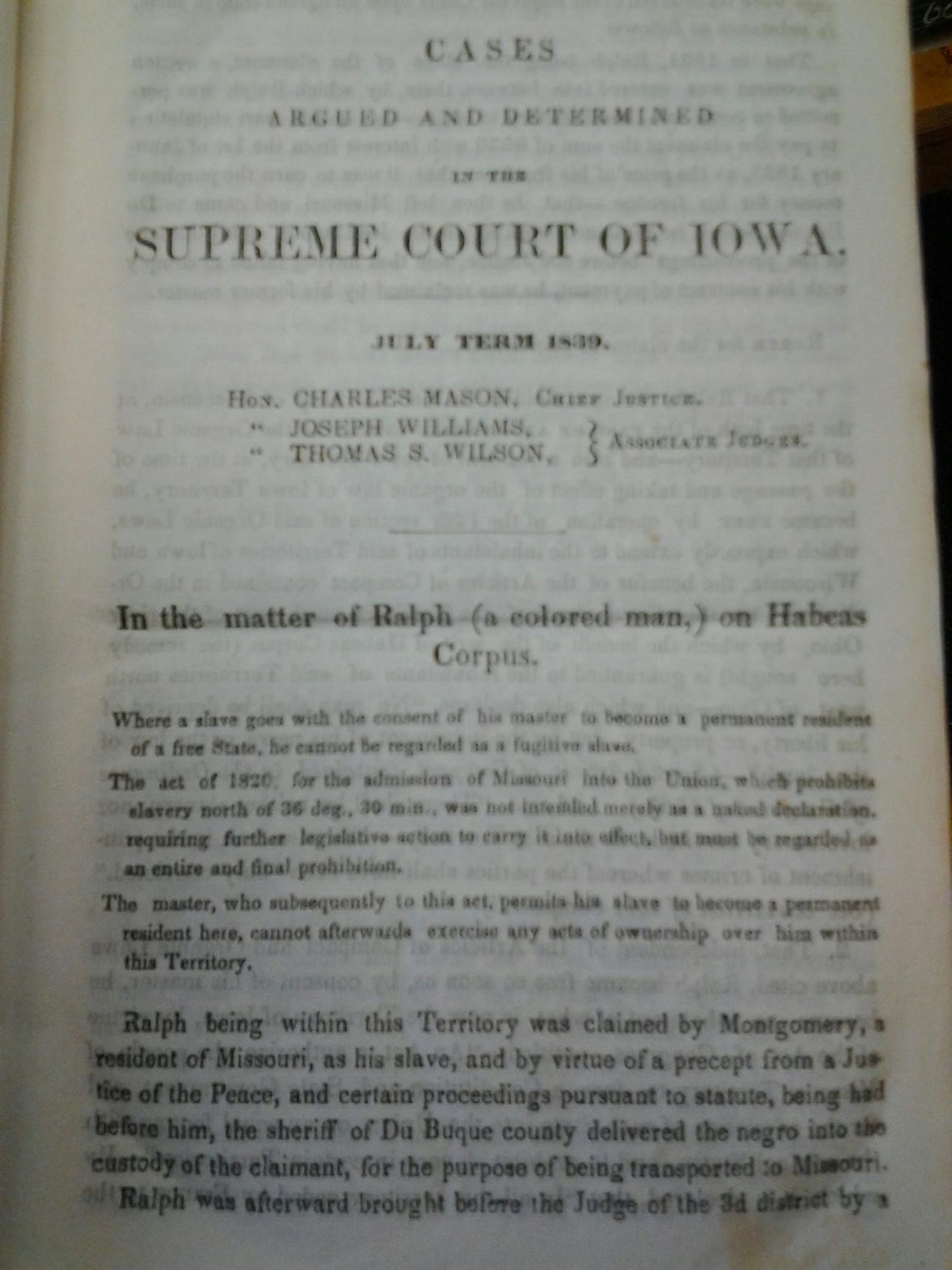 Iowa. In Re Ralph, A Black Man. The first 2 pages of this case are set out above.